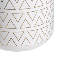 Add a modern touch to any space with the Geo Vase Small. Featuring a sleek gloss white finish and elegant gold trim, this contemporary vase showcases a striking geometric triangle pattern for a stylish, on-trend look.