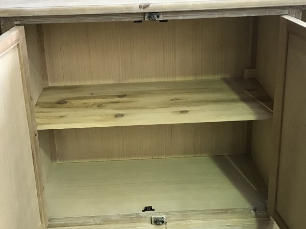 This stunning 4 door sideboard framed in reclaimed pine with Zinc doors and a circle feature overlay design ensures it is a statement piece. Recycled Timber Product. 46cms for the narrowest part & 52cms for the relief in the centre of the cabinet.