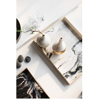 Marble Patterned Black & White set of 2 Rectangular trays. Natural stone look.
