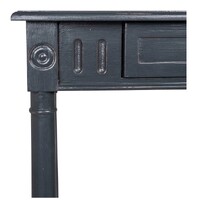 The Norfolk Console Table is a stylish and functional piece, perfect for entryways, hallways, or living spaces. Crafted from renewable Bayur wood sourced sustainably, this console features a sleek black painted finish that adds sophistication to any décor. Its compact size (80 x 25 x 80 cm) makes it ideal for smaller spaces while still offering practical storage.