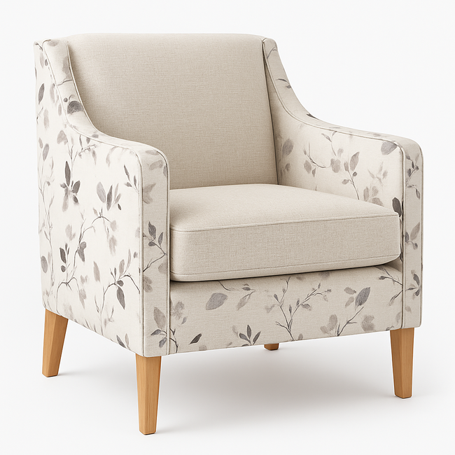Sally Premium Armchair covered in Plain Vinyl Fabric with Beech coloured legs